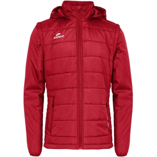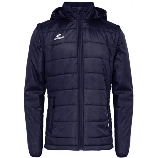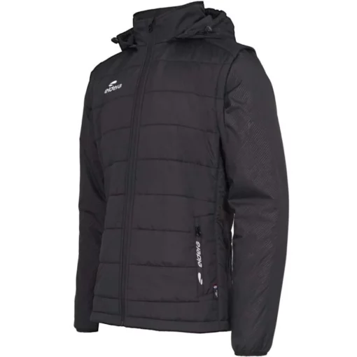 De mouwen en de capuchon zijn afneembaar en voorzien van opdrukken door embossing. De jas is uitgerust met ritszakken aan de voorkant, voorzien van een logodetail. De capuchon is verstelbaar via een elastisch koord met stopper. Verder is er een opstaande kraag die extra bescherming biedt. Zowel voor- als achteraan zijn de logo’s in 3D-print aangebracht. Binnenin bevindt zich een etiket bij de kraag waarin een naam met de hand kan worden geschreven. Samenstelling: 100% polyester.